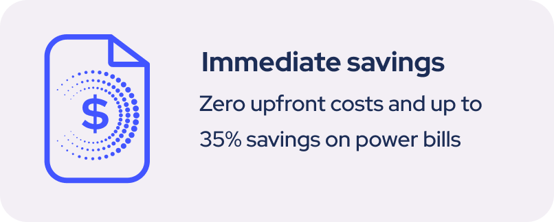 No smoke and mirrors here. There are zero upfront costs with NRN. You'll be billed at a reduced rate for the power you use.